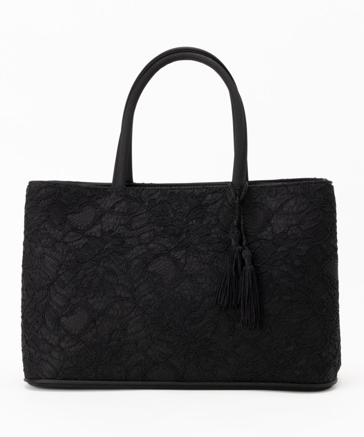 日本製のコードレースで仕立てたフォーマル用ハンドバッグです。内部はファスナー開閉式とホック開閉式の二層式で、貴重品と出し入れの頻度が高い荷物とを分けて収納いただけます。