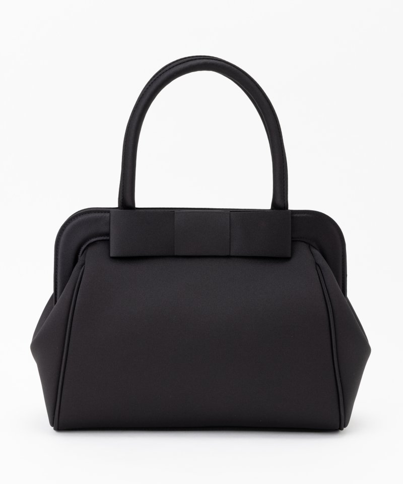 大きな平リボンがポイントの収納力あるブラックフォーマルバッグです。ふくらみをもたせたシルエットでポーチや飲料水、替えのストッキングなどかさ張るお荷物も収納可能です。