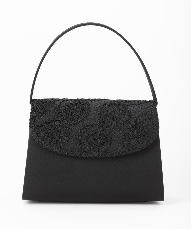 立体的なコート刺繍が高級感を感じさせる一品。かぶせのコード刺繍と本体のマットサテンから陰影が生まれ、エレガントな表情を見せてくれます。一般的な箱型タイプのバッグよりもマチもしっかりありますので、ポーチなどかさ張るお荷物も収納いただけます。やや深さもありますので、中のお荷物も見えにくい仕立てに。本体とかぶせの蓋は大きく開きますので、お荷物の出し入れもスムーズに行えます。