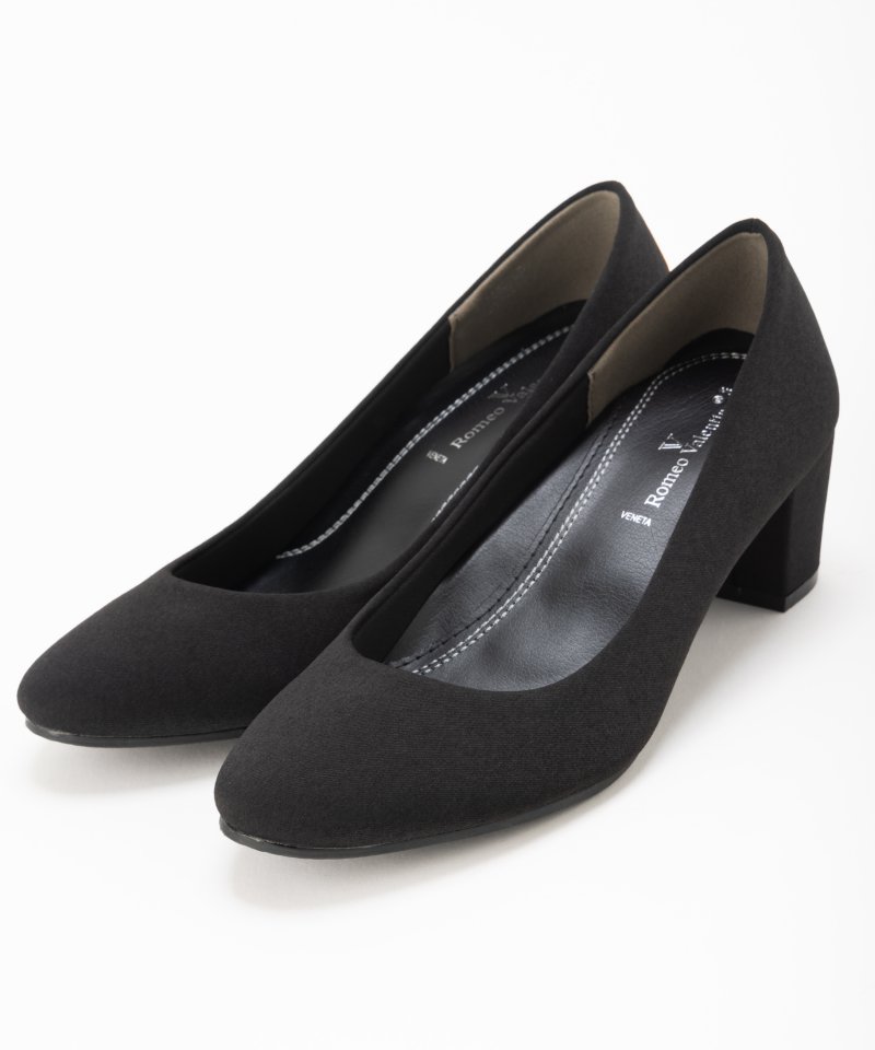 5cmヒールでスタイルアップしつつ、インソールのクッションと太ヒールで安定感もあります。履き口も浅い仕様ですので、一般的なパンプスですと緩くなりがちな方でも収まりが良くなるようデザインされています。