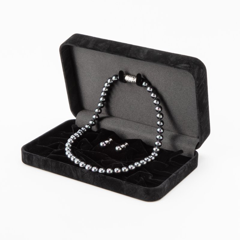 ●ネックレス・イヤリング共に緑がかったブラックのお色味です。