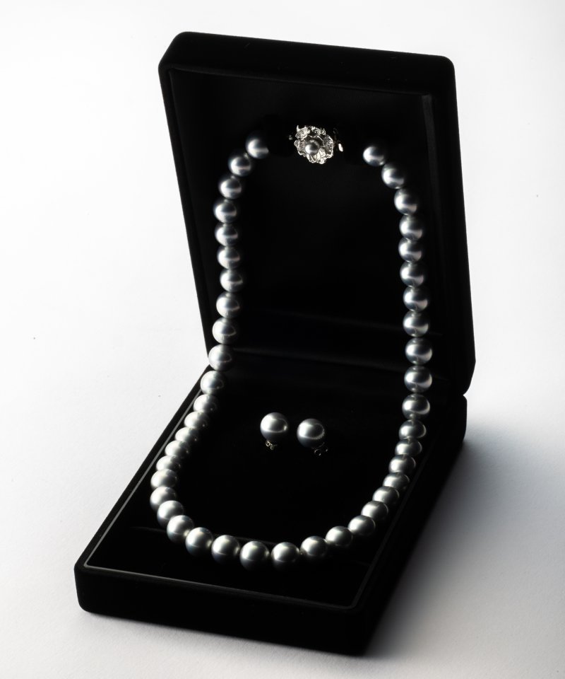 標準サイズの8mm玉を使用した貝パールネックレスとピアスのセットです。