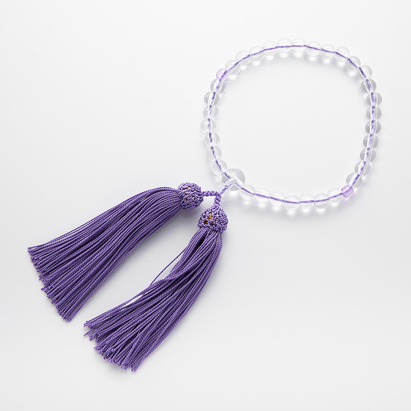 ライラックカラーをベースにクリアの主玉を連ねた念珠です。