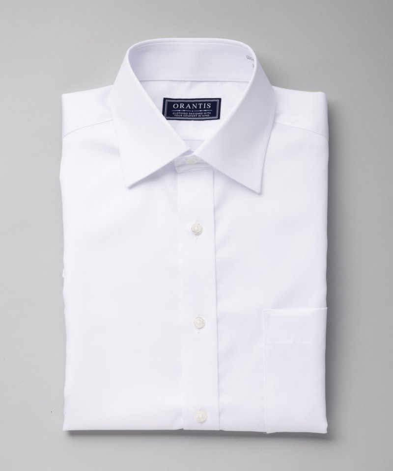 現代的なスタイルに相応しいセミワイドカラーのブロードシャツ。