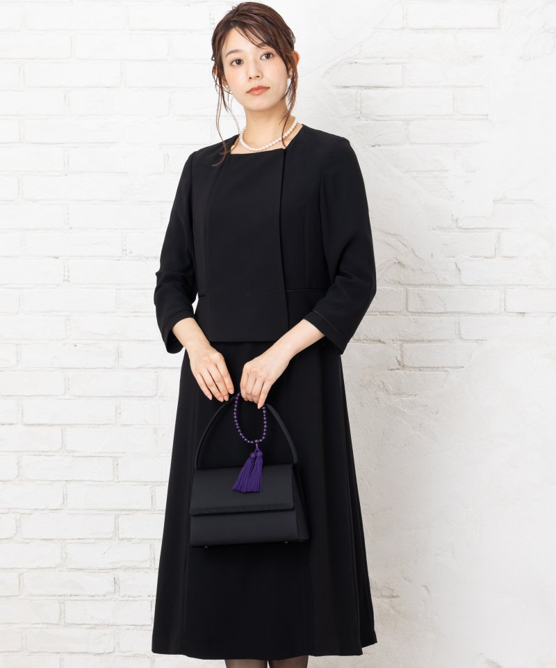 ブラウスとロングスカートを合わせたかのようなセットアップ風デザインのブラックフォーマルワンピースです。春~初秋にかけて3シーズンで着用いただける九分袖は、透け感を抑えることで大人女性に嬉しい仕様に。