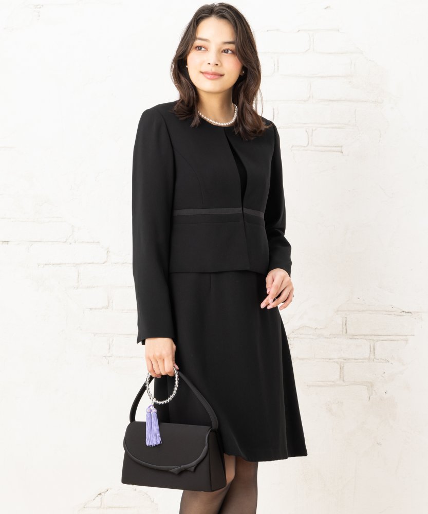 小柄な方の袖丈・着丈に合わせたプチサイズのベーシックなブラックフォーマルアンサンブルです。