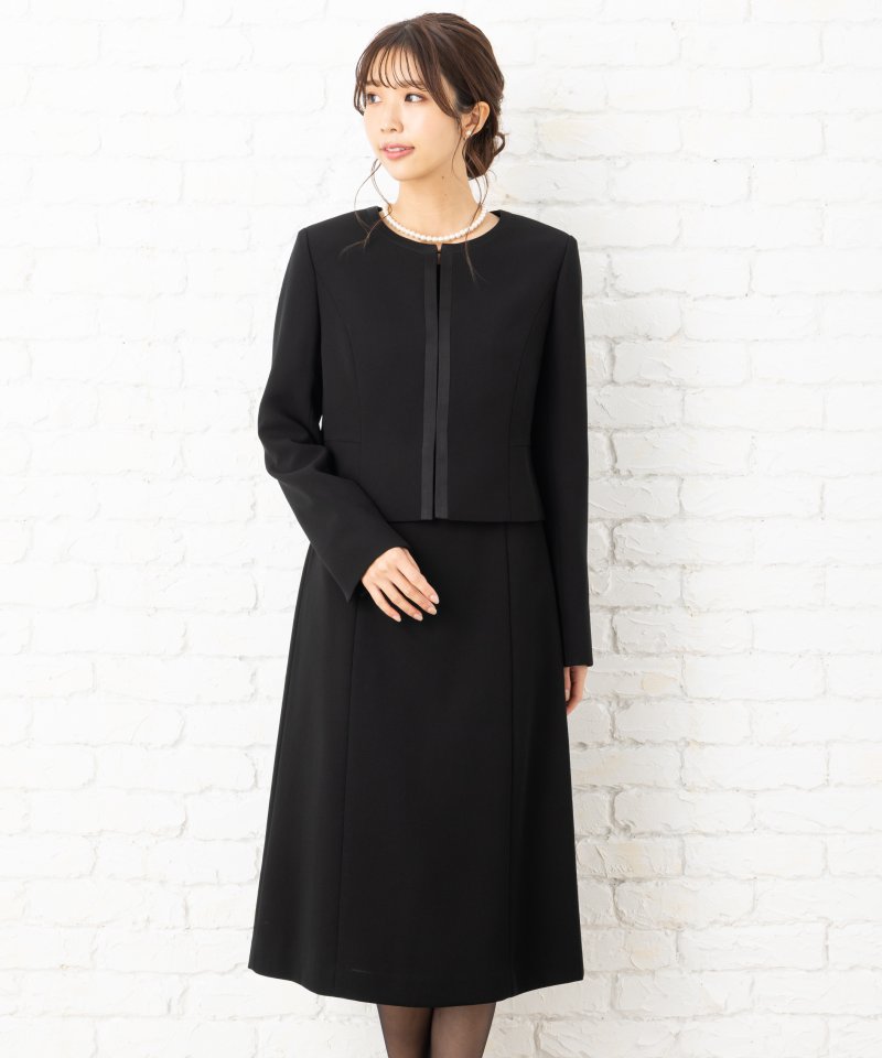 ベーシックなブラックフォーマルスーツです。シンプルなデザインに仕上げられておりますので、幅広い年代の方にお召し頂けます。