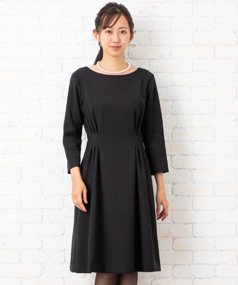 冠婚葬祭でお使いいただけるブラックワンピースです。卒園・卒業式や七五三などのセレモニーシーンをはじめ、顔合わせやご挨拶などの食事会、急な通夜葬儀にも対応します。