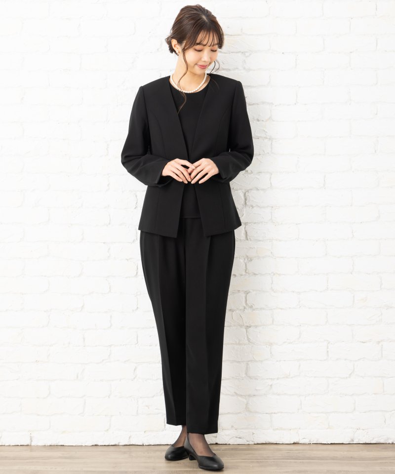 エメ カラーレスジャケット&ハイウエストテーパードパンツブラックフォーマル