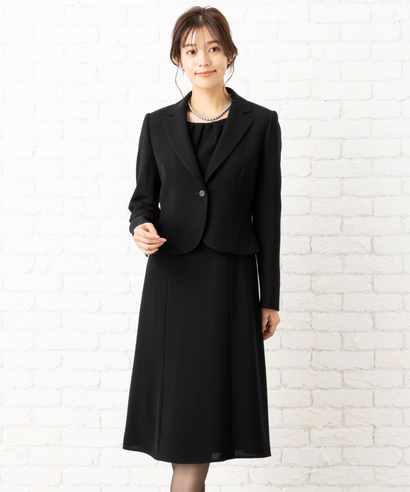 端正で整った印象を与えてくれるテーラードジャケットタイプのブラックフォーマルアンサンブルです。