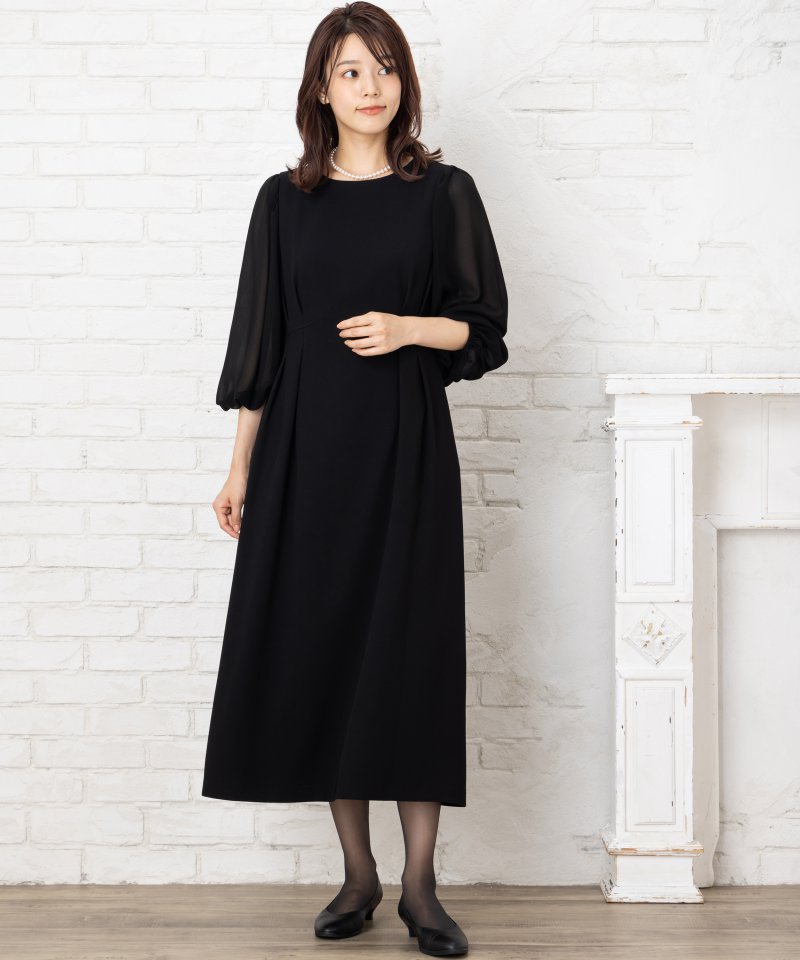 「着やすさ」と「質感」がコンセプトの東京ソワールブランド『ソワールベニール』。女性らしいふくらみを帯びた、ゆったりとした着心地のブラックワンピースです。濃染ブラックを使用していますので弔事でも安心して着用いただけます。
