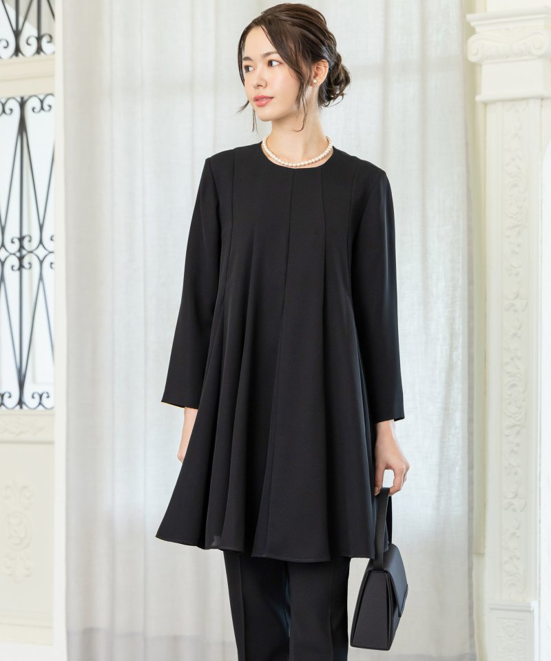 フレアブラウスとスリムパンツのフォーマルセットアップです。