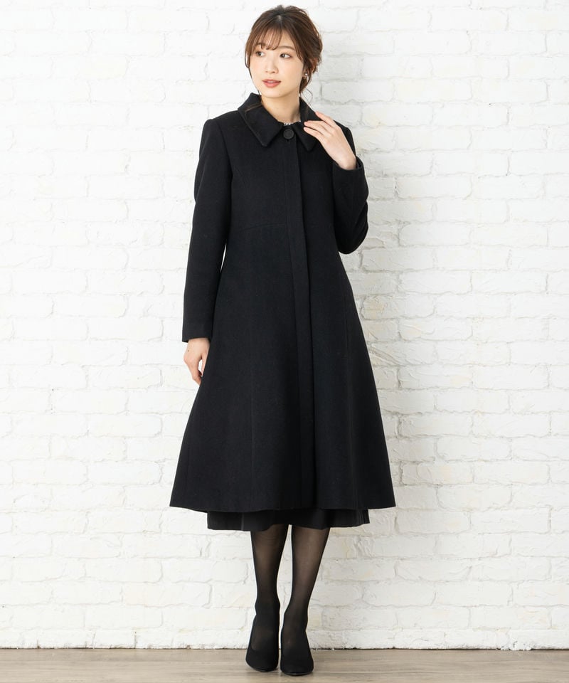 冬用ブラックフォーマルコートです。ウール地を使用し裏地にはキルティングのライナー付きで、真冬や寒冷地にも対応。