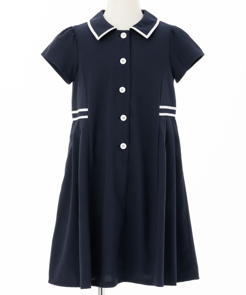 【KIDS】CHOPIN ショパン【キッズ】半袖ポロ風ワンピース ネイビー