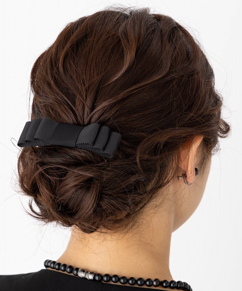 グログラン生地を使用した、慶弔両用でご使用いただける平リボンバレッタです。
