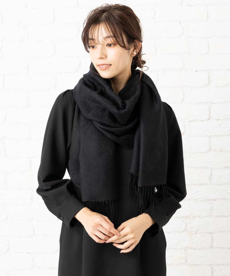 東京ソワール ウールシルク混紡・幾何学織り柄ストール