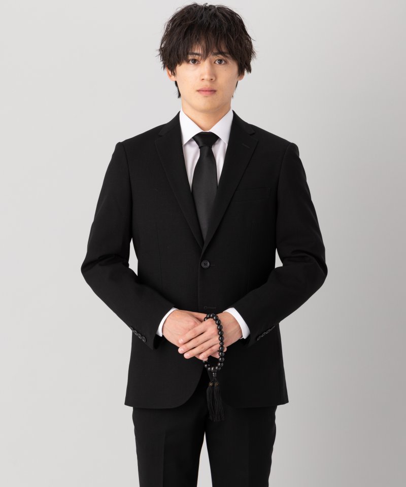 現代的なスリムシルエットで構築し、生地には光の反射を抑えた濃染のマットブラックを採用。目付けが軽く通気性を高めてくれる平織生地にすることで蒸し暑い時期でも快適です。襟はノーステッチ、袖ボタンは並び付けにすることで装飾を省き、弔事に特化した仕様に。