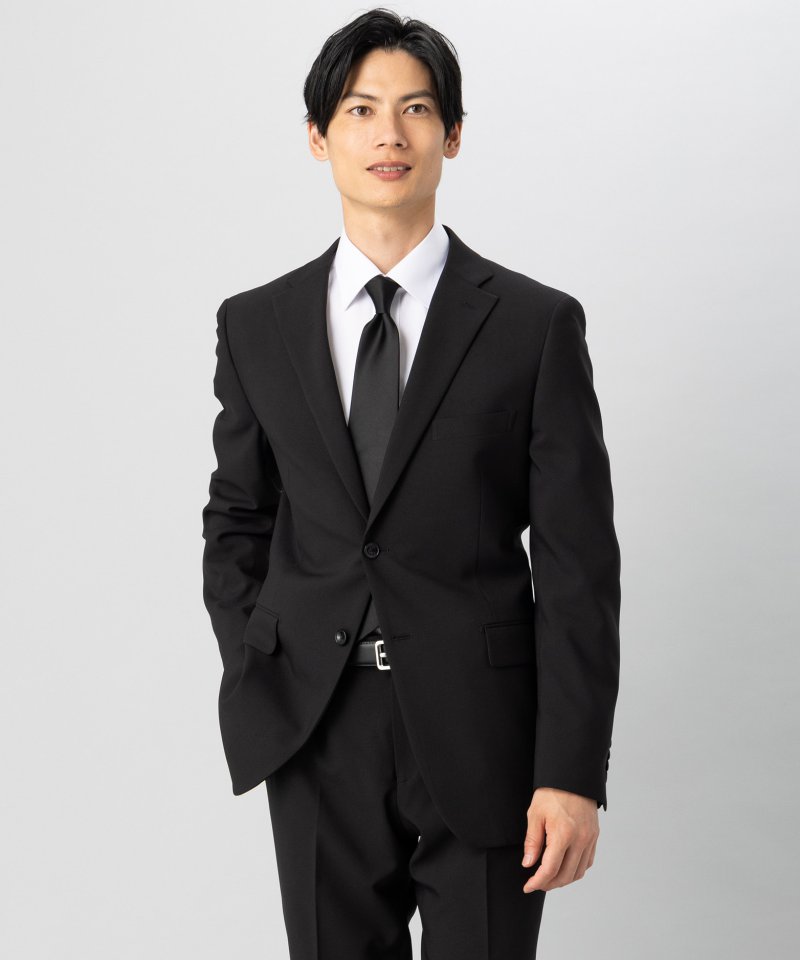 『P.S.FA パーフェクトスーツファクトリー』のブラックフォーマルスーツ。濃染加工されていない一般的なブラックスーツです。