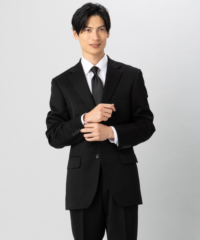 濃染加工が施された深い黒色に生地に、シルクのようなしなやかさが際立つ。AMFステッチや重ねボタンなどの飾り気を省き、弔事も席でも安心して着ることができる一着。